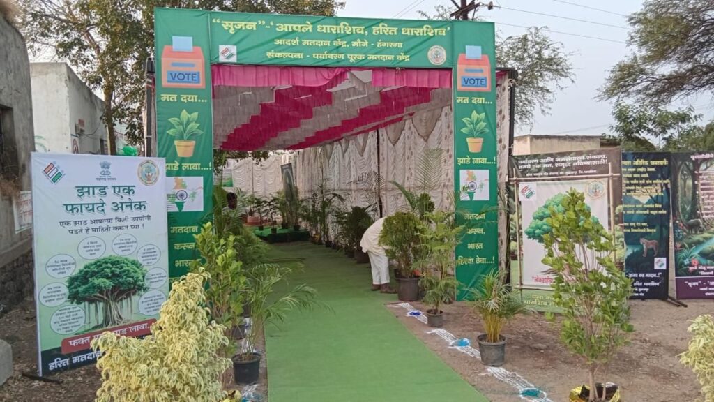 या उपक्रमांतर्गत धाराशिव तालुक्यातील शेकापूर प्राथमिक शाळा आणि तुळजापूर तालुक्यातील हंगरगावडी प्राथमिक शाळा येथे हरित मतदान केंद्रे उभारण्यात आली.या मतदान केंद्रांवर रोपवाटिकेतील स्थानिक प्रजातींच्या रोपांच्या सहाय्याने परिसर हिरवागार करण्यात आला होता.