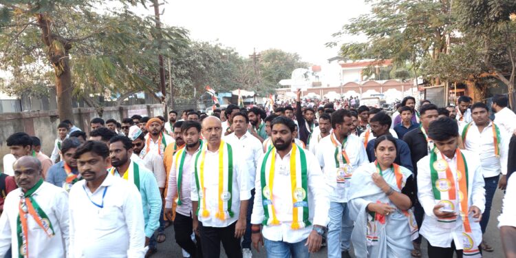 प्रभाग आठ मध्ये परवीन कुरेशी व स्वाती सचिन बनसोडे व महेश दिलीप बागल यांच्या प्रचारार्थ जिल्हाध्यक्ष डॉ. प्रतापसिंह पाटील यांची जंगी पदयात्रा