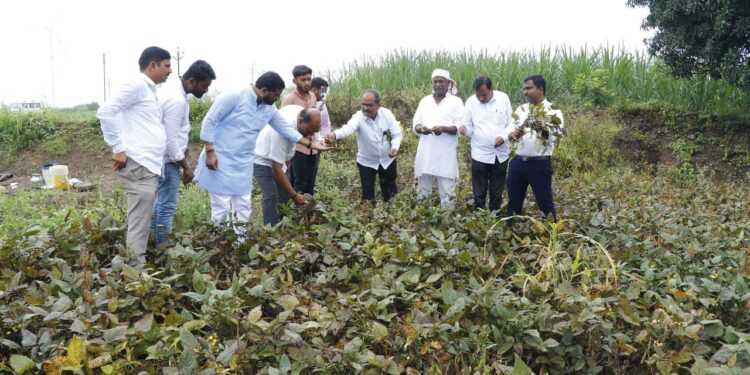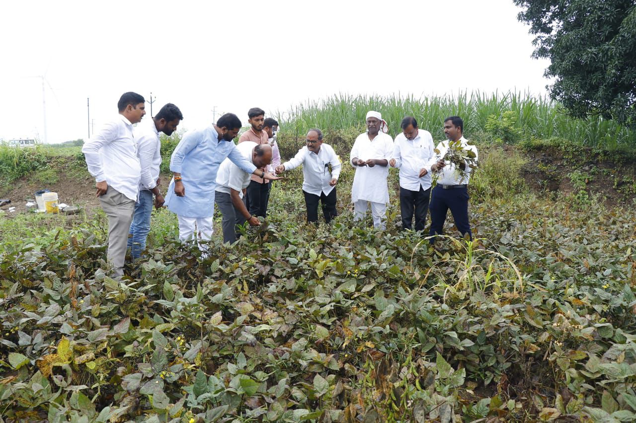 धाराशिव- जिल्ह्यात १४ ऑगस्टपासून कमी अधिक प्रमाणात सातत्याने पाऊस पडत आहे. परिणामी शेतकऱ्यांचे मोठे नुकसान होत आहे. अनेक महसूल मंडळांत अतिवृष्टी झाल्याने खरीप हंगाम संकटात सापडला असून अनेक ठिकाणी पिकांचे नुकसान होत आहे.दरम्यान पंचनाम्यांचे काम युद्धपातळीवर सुरू आहेत. याच अनुषंगाने आमदार राणाजगजितसिंह पाटील यांच्या सूचनेनुसार तालुका कृषी अधिकारी ए. जे. देशमुख यांच्या सोबत भाजपा जिल्हाध्यक्ष दत्ताभाऊ कुलकर्णी यांनी अतिवृष्टीग्रस्त भागांना भेट देऊन शेतीतील परिस्थितीची पाहणी केली. यावेळी तुळजापूर तालुक्यातील बसवंतवाडी, बोरनदवाडी नळ, वडगाव देव या गावांना भेट देण्यात आली. शेतकऱ्यांशी प्रत्यक्ष संवाद साधून झालेल्या नुकसानीचा आणि पुढील उपाययोजनांचा आढावा घेण्यात आला. यावेळी दत्ताभाऊ कुलकर्णी यांनी शेतकऱ्यांना दिलासा देत, शासनस्तरावरून तातडीची मदत मिळवून देण्यासाठी प्रयत्न करण्याचे आश्वासन दिले. शेतकऱ्यांच्या पाठीशी खंबीरपणे उभे राहणे हीच आमची भूमिका असल्याचे त्यांनी स्पष्ट केले. या पाहणीदरम्यान माजी जिल्हाध्यक्ष नितीन काळे, नेताजी पाटील, जिल्हा सरचिटणीस साहेबराव घुगे, दीपक आलूरे, दयानंद मुडके आदी उपस्थित होते.
