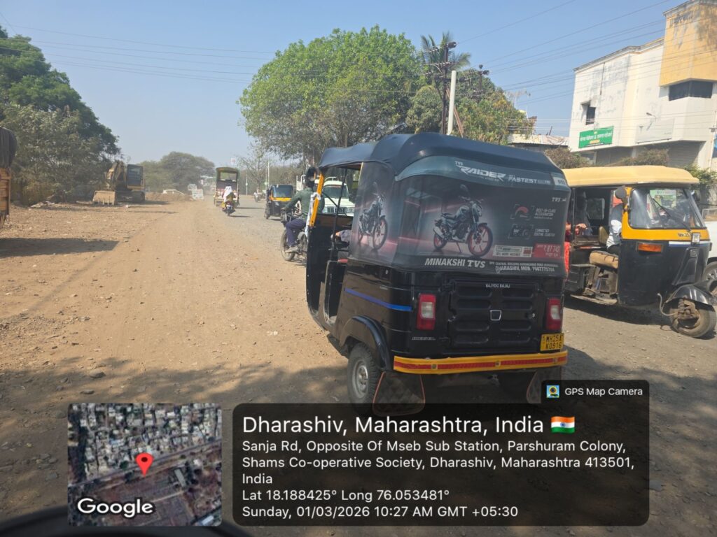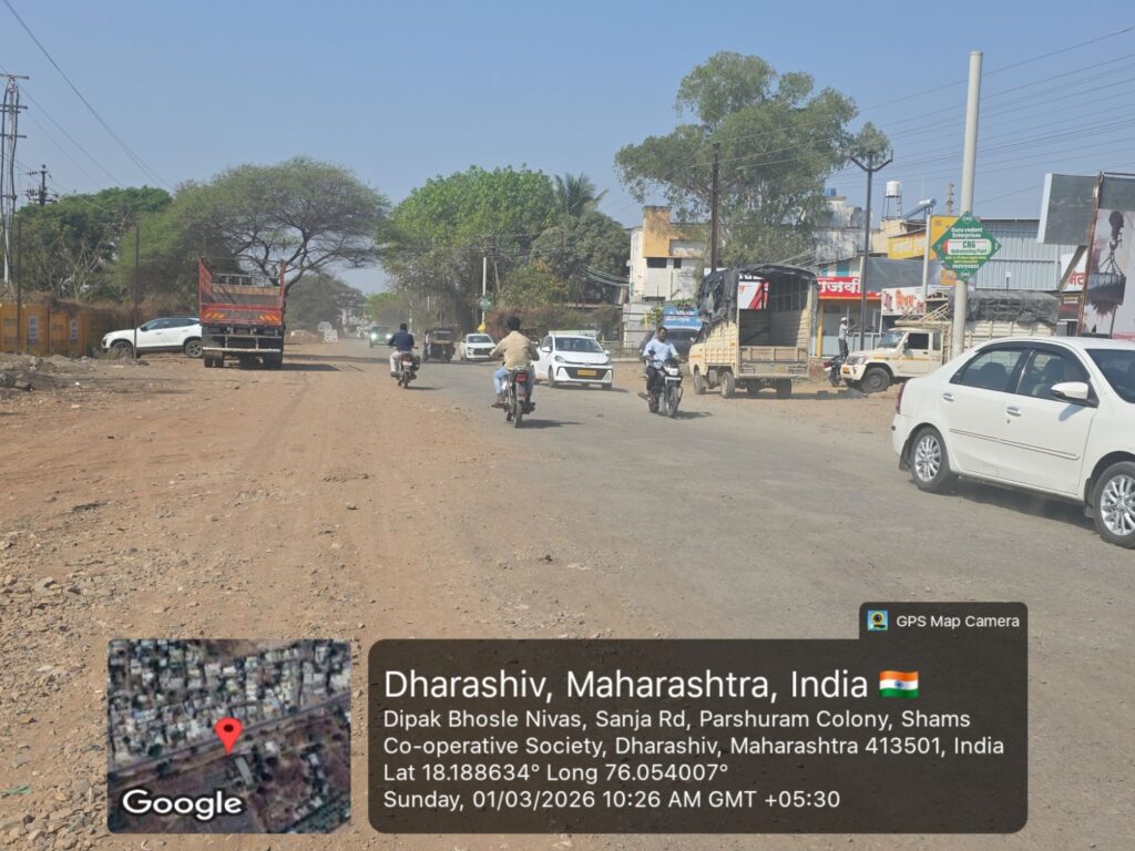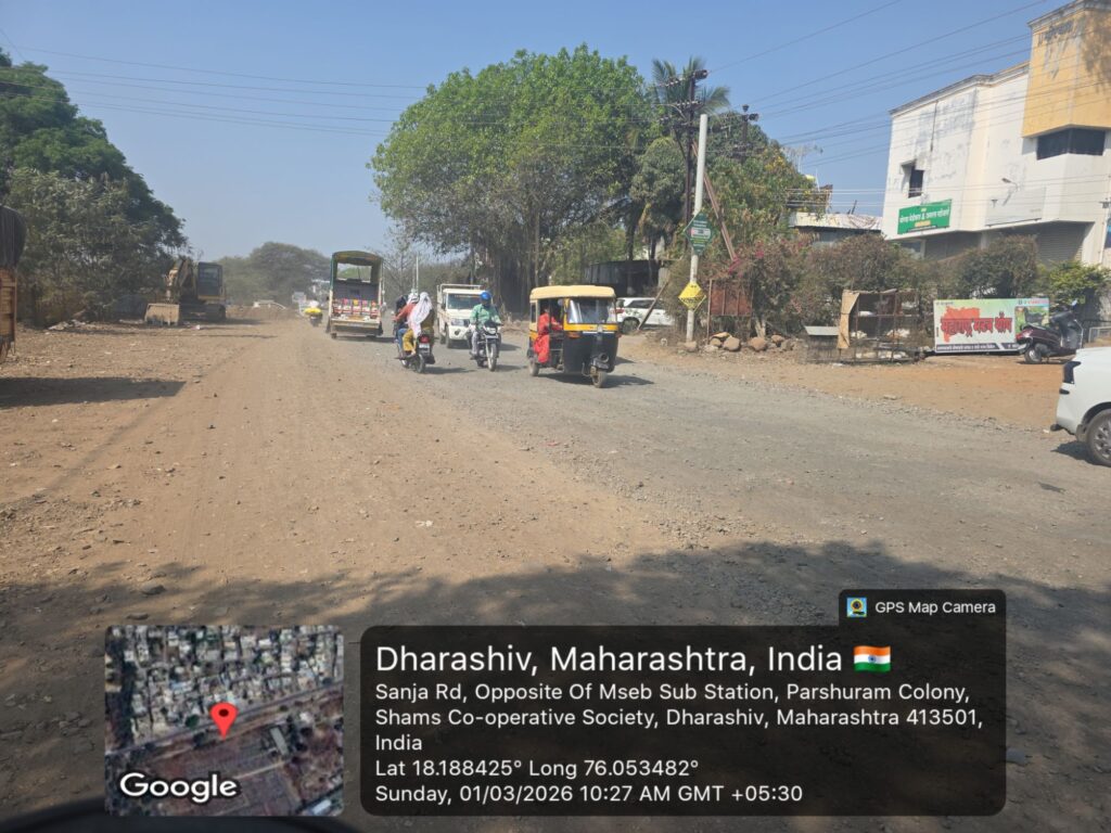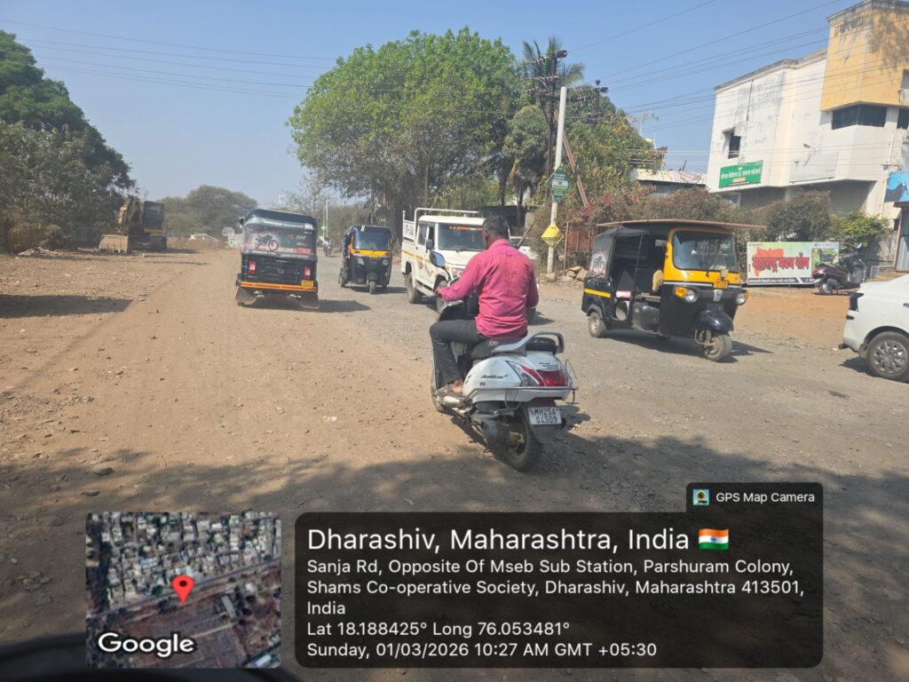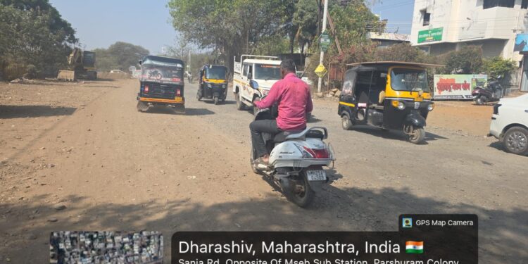 धाराशिव शहरातून बाहेर पडण्याचा मुख्य व महत्त्वाचा मार्ग असलेला सांजा रोड सध्या अक्षरशः खड्ड्यांनी विदीर्ण झाला असून नागरिकांना प्रचंड हालअपेष्टा सहन कराव्या लागत आहेत. छत्रपती शिवाजी महाराज चौक ते भवानी चौक या अवघ्या दीड किलोमीटर अंतरासाठी वाहनधारकांना तब्बल अर्धा ते पाऊण तास वेळ लागत आहे. पाच मिनिटांचा प्रवास आता वाहतूक कोंडी, खड्डे आणि धुळीच्या साम्राज्यात अडकून त्रासदायक ठरत आहे.