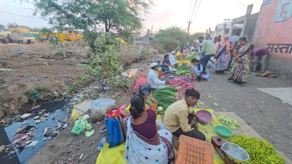 जिल्ह्याचे मुख्यालय असलेल्या धाराशिव शहरातील आठवडी बाजारात सध्या घाणीचे अक्षरशः साम्राज्य पसरले असून, नाले, सांडपाणी / संडास आणि कचऱ्याच्या ढिगाऱ्याजवळच भाजीपाला व फळांची विक्री होत असल्याने नागरिकांच्या आरोग्यावर गंभीर परिणाम होण्याची भीती व्यक्त केली जात आहे. ताजी व आरोग्यदायी समजून घेतली जाणारी भाजी येथे ‘विषासमान’ ठरत असल्याची तीव्र प्रतिक्रिया नागरिकांतून उमटत आहे.