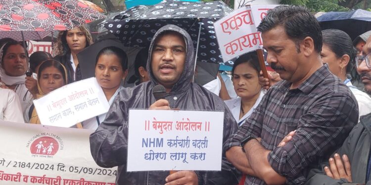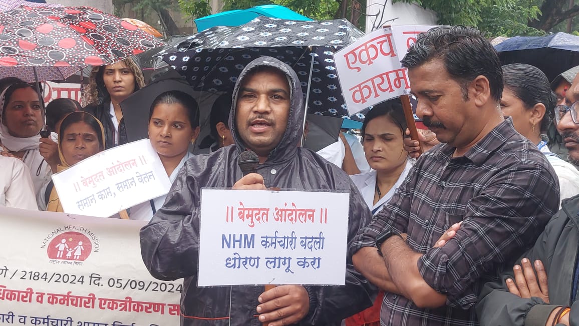 केंद्र शासनाच्या मार्गदर्शक सुचनाप्रमाणे समुदाय आरोग्य अधिकारी यांच्या सेवा कालावधी ६ वर्षे पुर्ण झाल्यानंतर कंत्राटी सेवा नियमित करण्याचा निर्णय सर्वाना लागू करण्यात यावा. तर नागपूर, गोंदिया व जालना जिल्ह्यातील सर्पोट स्टाफ समायोजन नियुक्ती आदेशाची अंमलबजावणी करावी, त्यांना तातडीने रिक्त पदावर हजर करुन घ्यावे. राष्ट्रीय आरोग्य अभियान अंतर्गत अधिकारी व कर्मचारी यांचे समकक्ष पद व समान शैक्षणिक पद समायोजनास नसेल तर या कर्मचारी यांच्या सेवा समायोजनासाठी वित्त विभागाचा शासन निर्णय दि. १५ जुलै २०२५ नुसार आकृतीबंधमध्ये नवीन पद निर्माण करावे. सार्वजनिक आरोग्य विभागामार्फत उपकेंद्राच्या प्रस्तावीत आकृतीबंदमध्ये कंत्राटी समुदाय आरोग्य अधिकारी असे प्रस्तावीत केले आहे. त्याऐवजी नियमित समुदाय आरोग्य अधिकारी पद निर्माण करावे. तरी कंत्राटी आयुष वैद्यकिय अधिकारी (BMS), RBSK वैद्यकिय अधिकारी यांचे गट-ब वैद्यकिय अधिकारी म्हणून आयुर्वेदिक डिस्पेंसरी, प्रा. आ. केंद्र, ग्रा.रु.व उपजिल्हा रुग्णालय, रुग्णालय, वैद्यकिय शिक्षण विभाग, महानगरपालिका, जिल्हा कारागृह विभागात समान शैक्षणिक अर्हतेनुसार आणि BHMS, BUMS यांना वैद्यकिय अधिकारी गट-ब यांना RH, SDH व DH येथे समायोजन करावे, आदी मागण्यांसाठी हे आंदोलन सुरु आहे. या आंदोलनामध्ये जीवन कुलकर्णी, किरण बारकुल, डॉ. विलास तोडकर, सतीश गिरी, किरण तानवडे, किशोर गवळी, अशोक चव्हाण, किशोर तांदळे, अमर सपकाळ, कलीम शेख, मुकुंद उंबरे, गणेश चव्हाण, शरद हिंगमीरे, शर्मिला ठवरे, पठाण, रणखांब, सस्ते, गाढवे, विनोद मोरे, सुरेश पाटील, डॉ विक्रांत राठोड, गणेश चव्हाण, संतोष पोतदार, बाळासाहेब कोळेकर, विश्वजित जगदाळे, अमृत कुंभार, डॉ सागर कुंभार आदींसह महिला व पुरुष कर्मचारी मोठ्या संख्येने सहभागी झाले होते.