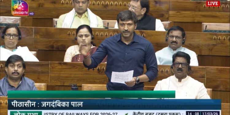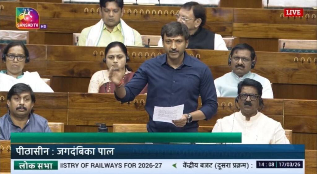 नवी दिल्ली: संसदेच्या अर्थसंकल्पीय अधिवेशनात रेल्वे मंत्रालयाच्या अनुदान मागण्यांवरील चर्चेदरम्यान धाराशिव लोकसभा मतदारसंघाचे खासदार ओमप्रकाश राजेनिंबाळकर यांनी मराठवाड्यातील प्रलंबित रेल्वे प्रश्नांवर ठाम आणि आक्रमक भूमिका मांडत केंद्र सरकारचे लक्ष वेधले.