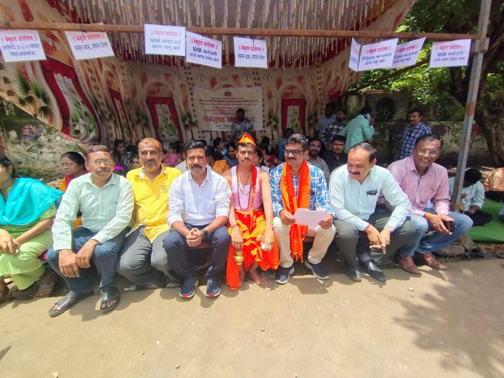 केंद्र शासनाच्या मार्गदर्शक सुचनाप्रमाणे समुदाय आरोग्य अधिकारी यांच्या सेवा कालावधी ६ वर्षे पुर्ण झाल्यानंतर कंत्राटी सेवा नियमित करण्याचा निर्णय सर्वाना लागू करण्यात यावा. तर नागपूर, गोंदिया व जालना जिल्ह्यातील सर्पोट स्टाफ समायोजन नियुक्ती आदेशाची अंमलबजावणी करावी, त्यांना तातडीने रिक्त पदावर हजर करुन घ्यावे. राष्ट्रीय आरोग्य अभियान अंतर्गत अधिकारी व कर्मचारी यांचे समकक्ष पद व समान शैक्षणिक पद समायोजनास नसेल तर या कर्मचारी यांच्या सेवा समायोजनासाठी वित्त विभागाचा शासन निर्णय दि. १५ जुलै २०२५ नुसार आकृतीबंधमध्ये नवीन पद निर्माण करावे. सार्वजनिक आरोग्य विभागामार्फत उपकेंद्राच्या प्रस्तावीत आकृतीबंदमध्ये कंत्राटी समुदाय आरोग्य अधिकारी असे प्रस्तावीत केले आहे. त्याऐवजी नियमित समुदाय आरोग्य अधिकारी पद निर्माण करावे. तरी कंत्राटी आयुष वैद्यकिय अधिकारी (BMS), RBSK वैद्यकिय अधिकारी यांचे गट-ब वैद्यकिय अधिकारी म्हणून आयुर्वेदिक डिस्पेंसरी, प्रा. आ. केंद्र, ग्रा.रु.व उपजिल्हा रुग्णालय, रुग्णालय, वैद्यकिय शिक्षण विभाग, महानगरपालिका, जिल्हा कारागृह विभागात समान शैक्षणिक अर्हतेनुसार आणि BHMS, BUMS यांना वैद्यकिय अधिकारी गट-ब यांना RH, SDH व DH येथे समायोजन करावे, आदी मागण्यांसाठी हे आंदोलन सुरु आहे. या आंदोलनामध्ये जीवन कुलकर्णी, किरण बारकुल, सतीश गिरी, किरण तानवडे, किशोर गवळी, अशोक चव्हाण, किशोर तांदळे, अमर सपकाळ, कलीम शेख, शर्मिला ठवरे, पठाण, रणखांब, सस्ते, गाढवे, संजय मुळे, रवींद्र यादव, विनोद मोरे, सुरेश पाटील, डॉ विक्रांत राठोड, गणेश चव्हाण, संतोष पोतदार, बाळासाहेब कोळेकर,विश्वजित जगदाळे, अमृत कुंभार आदींसह महिला व पुरुष कर्मचारी मोठ्या संख्येने सहभागी झाले आहेत.