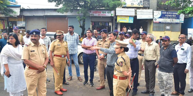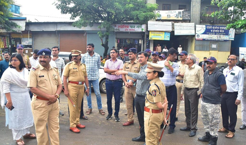 जिल्हाधिकारी कीर्ती किरण पुजार व पोलीस अधीक्षक श्रीमती शफकत आमना यांनी आज धाराशिव शहरातील गणेश स्थापना व विसर्जन मार्गाची पाहणी केली. गणेश मूर्त्यांचे विसर्जन करण्यात येणाऱ्या हातलाई देवी मंदिर परिसरातील तलाव व समता चौकातील सार्वजनिक विहिरीला भेट देऊन पाहणी केली.यावेळी उपविभागीय अधिकारी ओंकार देशमुख, पोलीस उपअधीक्षक सुरेशकुमार राऊत, तहसीलदार डॉ.मृणाल जाधव,पोलीस निरीक्षक कुमार दराडे व संबंधित विभागाचे अधिकारी-कर्मचारी उपस्थित होते.