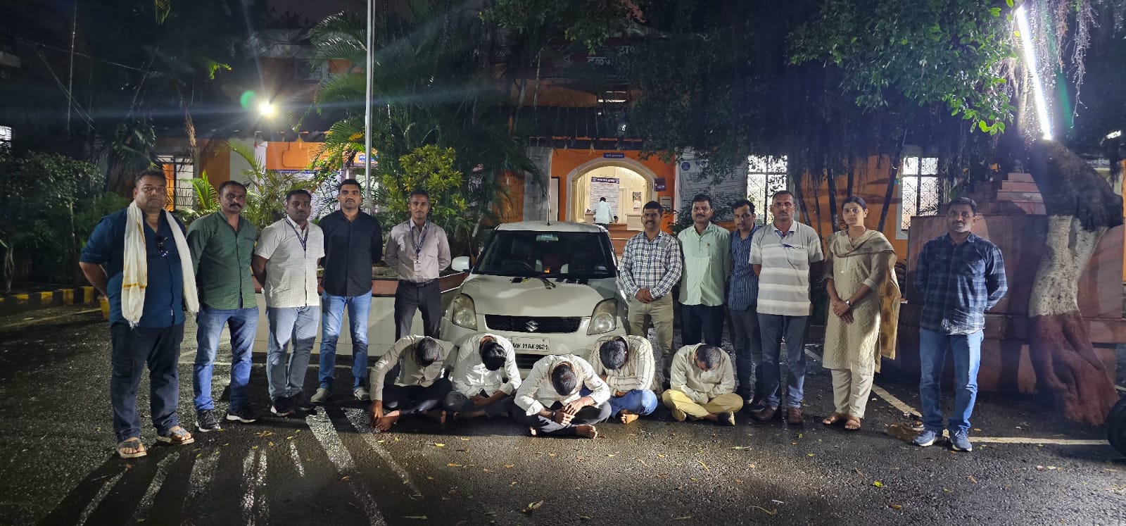 मिळालेल्या माहितीवरून सायंकाळी सव्वा सातच्या सुमारास पथकाने बायपासवर छापा टाकला. तेथे एमएच 11 ए के 9621 या क्रमांकाची पांढरी शिफ्ट कार उभी दिसली. पोलीस पाहून कारमधील दोन इसम पळून जाण्याच्या तयारीत असतानाच त्यांना गाठून पकडण्यात आले. कारमधील उर्वरित तिघांनाही ताब्यात घेण्यात आले.