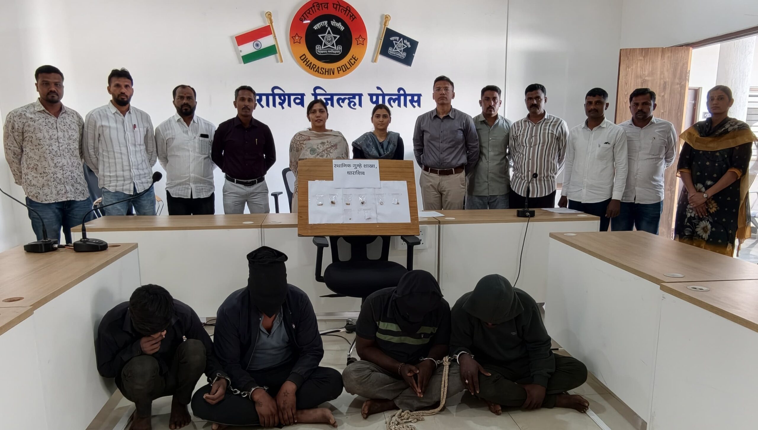 पोलीस अधीक्षक रितू खोकर यांनी स्थानिक गुन्हे शाखा, धाराशिव यांना तात्काळ तपास करून नमूदचा गुन्हा उघडकीस आणणेबाबत आदेशित केले होते.दिनांक 10.1.2026 रोजी स्थानिक गुन्हे शाखेचे सपोनी सुदर्शन कासार व पथक यांना गोपनीय बातमीदारा मार्फत सदर गुन्ह्यातील आरोपी बाबत माहिती प्राप्त झाली. पथकाने मिळालेल्या बातमीवरून मोहा, ता कळंब येथील पारधी पिढीवर छापा टाकून 04 संशयित ताब्यात घेतले. नमूद आरोपींना विश्वासात घेऊन त्यांच्याकडे चौकशी केली असता त्यांनी सदर गुन्हा केल्याचे कबूल केले. तसेच दिनांक 17.12.2025 रोजी विमानतळ परिसर धाराशिव येथे दरोडा टाकला असल्याची तसेच, गोळेगाव ता वाशी, अंतरवली ता भूम या ठिकाणीही चोरी केली असल्याचे सांगितले. पोलिसांनी आरोपीकडून नमूद गुन्ह्यातील 16.2 ग्रॅम वजनाचे दागिने जप्त केले आहेत. तसेच नमूद आरोपीकडून चोरीच्या 04 मोटरसायकल जप्त करण्यात आल्या, शिर्डी व जामखेड येथील आहेत. अशाप्रकारे स्थानिक गुन्हे शाखेने नमूद आरोपीकडून दरोडा, जबरी चोरी आणि मोटरसायकल चोरीचे एकूण 08 गुन्हे उघडकीस आणून त्यांच्याकडून एकूण 02,07,000 रुपये किंमतीचा मुद्देमाल जप्त करण्यात आला आहे. अटक करण्यात आलेल्या आरोपींची नावे- अनिल उर्फ लल्ल्या बादल शिंदे, छगन श्रीपती काळे, बिभीषण उर्फ बबड्या दिलीप काळे, विजय उर्फ तुंबड्या आप्पा पवार सर्व रा मोहा ता. कळंब जि धाराशिव अशी असून नमूद आरोपी आणि जप्त मुद्देमाल यांना पुढील कारवाई कामी पोस्ट धाराशिव ग्रामीण यांच्या ताब्यात देण्यात आले आहे. तसेच यातील आरोपी धाराशिव आणि बाहेर जिल्ह्यातील दरोडा जबरी चोरी सारख्या गुन्ह्यातील आरोपी असल्याची माहिती समोर आली आहे.