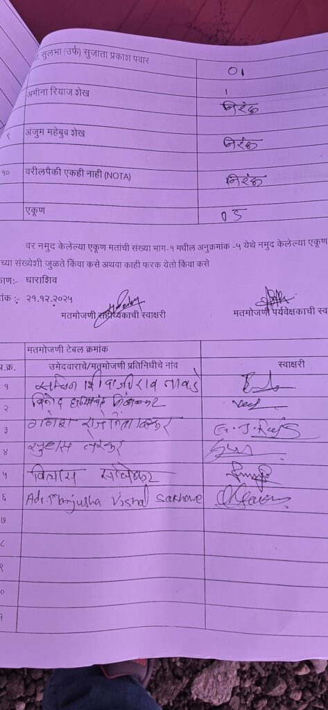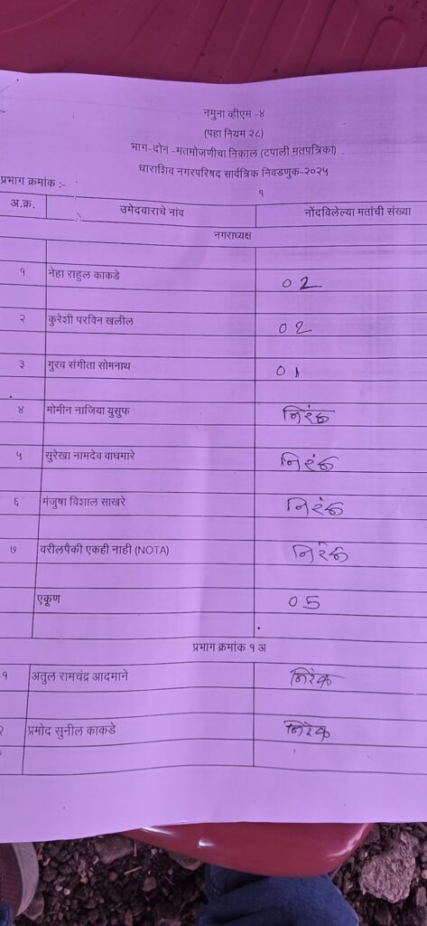 धाराशिव नगर परिषद निवडणूक “या” ठिकाणी, “अशा” पद्धतीने “एवढ्या” फेऱ्यांमध्ये होणार मतमोजणी
