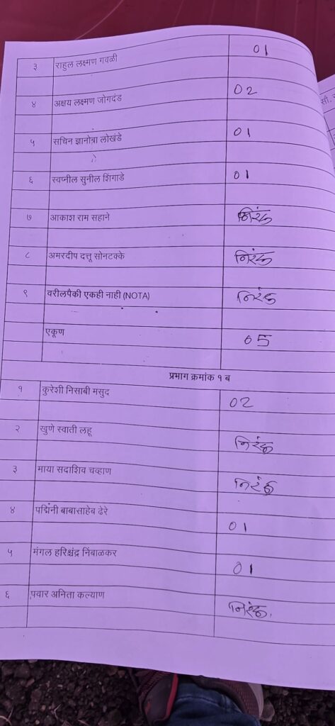 नगर परिषद निवडणूक प्रभाग क्रमांक एक टपाली मतमोजणी पूर्ण