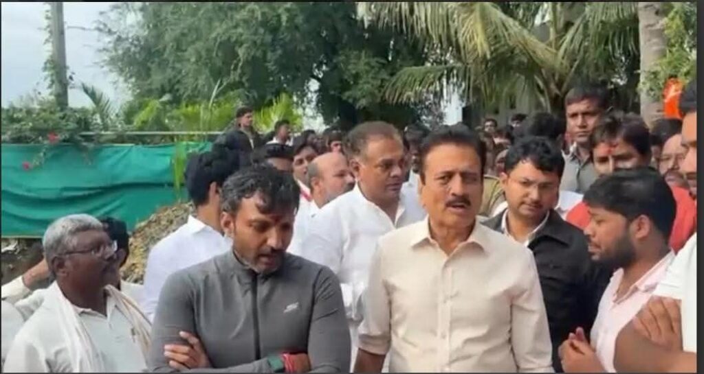 धाराशिव दि.२४ (अमजद सय्यद):धाराशिव जिल्ह्यात झालेल्या अतिवृष्टी आणि ढगफुटीमुळे भूम, परांडा,वाशी तालुक्यातील अनेक गावे जलमय झाली असून नागरिकांचे मोठ्या प्रमाणात नुकसान झाले असून जनजीवन उध्वस्त झाले आहे. या पार्श्वभूमीवर राज्याचे जलसंपदा व आपत्ती व्यवस्थापन मंत्री गिरीश महाजन यांनी जिल्ह्यातील आपत्तीग्रस्त भागाची पाहणी केली. या पाहणी दौऱ्यात जिल्हाधिकारी किर्ती किरण पुजार, स्थानिक लोकप्रतिनिधी तसेच पोलीस अधीक्षक श्रीमती रितू खोखर या स्वतः नागरिकांच्या परिस्थितीची जाण घेण्यासाठी उपस्थित होत्या.