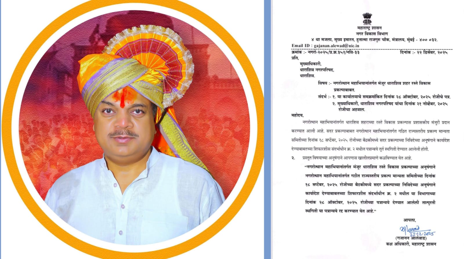 त्या पत्रात सादर केलेल्या मुद्द्यांची सत्यता तपासण्यासाठी उपमुख्यमंत्री एकनाथरावजी शिंदे यांच्या अध्यक्षतेखाली ४ नोव्हेंबर रोजी बैठक आयोजित करण्यात आली होती. या बैठकीस नगरविकास विभागातील वरिष्ठ अधिकारी तसेच नगरपालिकेचे अधिकारी उपस्थित होते. सचिवांच्या माध्यमातून निविदा प्रक्रियेची सखोल तपासणी करण्यात आली असता, संपूर्ण प्रक्रिया नियमबद्ध व पारदर्शक रितीने पार पडल्याचे स्पष्ट झाले. त्यानुसार, यावर देण्यात आलेली तात्पुरती स्थगिती उठविण्यात आली होती व शहरातील रस्ते कामांचा देण्यात आलेली स्थगिती रद्द झाल्याचा निर्णय चार नोव्हेंबर रोजीच झाला होता. मात्र त्या कालावधीत जिल्ह्यात पालिका निवडणुकीच्या पार्श्वभूमीवर आचारसंहिता सुरू होती. त्यामुळे स्थगिती रद्द होऊनही कामाला सुरुवात करता आली नाही. आता आज स्थगित रद्द झाल्याचे अधिकृत पत्र जारी करण्यात आले आहे. अनेक महिन्यांपासून सुरू असलेली नागरिकाची हेळसांड आणि गैरसोय आता दूर होणार आहे. रस्त्यांच्या कामाला सुरुवात करण्यासाठी आता कोणतीही आडकाठी येणार नाही. पालिका निवडणुकीत सर्वसामान्य मतदारांनी भाजपाला भरभरून कौल दिल्यानंतर लगेच ही आनंदाची वार्ता आली आहे. त्यामुळे उद्यापासून कामाला सुरुवात होणार असून औपचारिक शुभारंभ मान्यवरांच्या उपस्थितीत नंतर केला जाणार असल्याचे आमदार राणाजगजितसिंह पाटील यांनी सांगितले आहे.