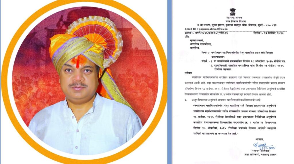 आपली अकार्यक्षमता जनतेसमोर येईल या भीतीने जिल्ह्यातील अपप्रवृत्तीच्या विरोधकांनी वेगवेगळ्या पद्धतीने या कामाला आडकाठी आण्यासाठी जाणीवपूर्वक प्रयत्न केले. यासाठी त्यांनी अनेक हातखंडे वापरत हा विषय अनेक महिने प्रलंबित ठेवला. मात्र आमदार राणाजगजितसिंह पाटील यांचा यासाठी सातत्याने पाठपुरावा सुरू होता. त्याला अनुसरून सदर कामांसाठी धाराशिव नगरपरिषदेचे मुख्याधिकाऱ्यांनी दिनांक १६ ऑक्टोबर २०२५ रोजी कार्यारंभ आदेश जारी केले होते. त्यानुसार दिनांक २८ ऑक्टोबर २०२५ रोजी या कामांना प्रत्यक्ष प्रारंभ देखील झाला. मात्र, पालकमंत्री यांच्या कडे काही नागरिक व जनप्रतिनिधींनी निवेदन सादर केले होते.या अनुषंगाने जिल्ह्याचे पालकमंत्री प्रताप सरनाईक यांनी दिलेल्या पत्राच्या आधारावर उपमुख्यमंत्री तथा नगरविकास मंत्री एकनाथ शिंदे यांनी दूरध्वनीद्वारे सदर कामांना स्थगिती दिली.
