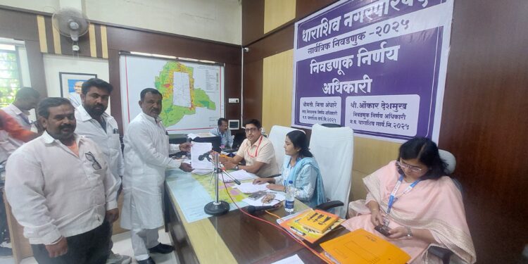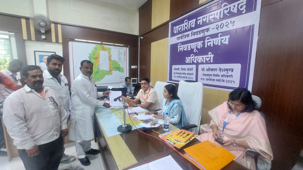 आज त्यांनी प्रभागातील कार्यकर्ते व समर्थकांच्या उपस्थितीत भव्य शक्ती प्रदर्शन करत नामनिर्देशन अर्ज दाखल केला. धाराशिव नगरपरिषद निवडणूक निर्णय अधिकारी ओंकार देशमुख तसेच सहाय्यक निवडणूक निर्णय अधिकारी श्रीमती नीता अंधारे यांच्याकडे त्यांनी अधिकृतरित्या आपला उमेदवारी अर्ज सादर केला.