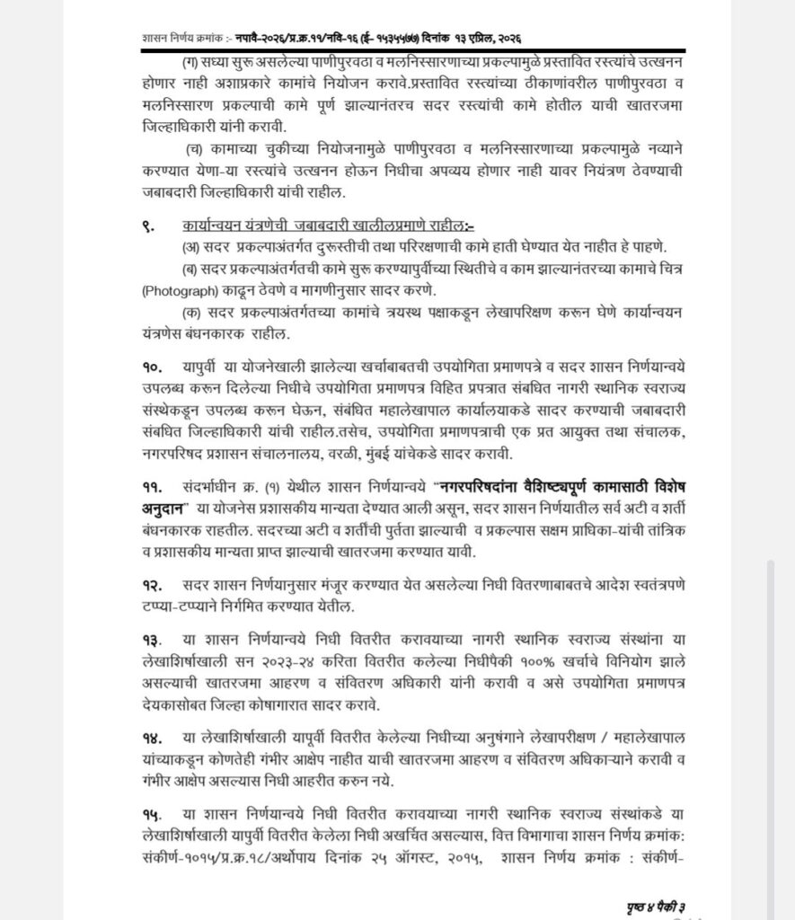शासनाच्या ‘वैशिष्ट्यपूर्ण कामांसाठी विशेष अनुदान’ योजनेअंतर्गत मंजूर झालेल्या या निधीतून नाट्यगृहाचा सर्वांगीण विकास केला जाणार आहे. प्रकल्प खर्चात ९० टक्के हिस्सा राज्य शासनाचा तर १० टक्के हिस्सा नगरपरिषदेचा राहणार आहे. तसेच सर्व कामे ई-निविदा प्रक्रियेद्वारे पारदर्शक पद्धतीने राबविण्याचे निर्देश देण्यात आले आहेत.