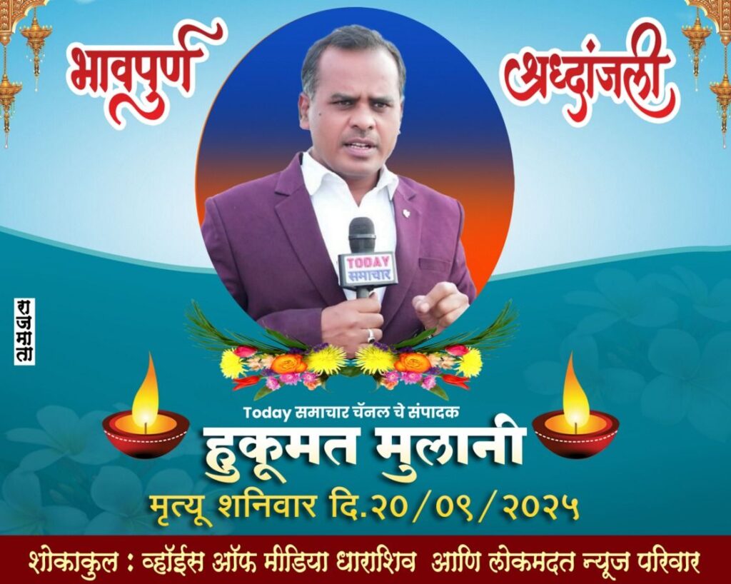 धाराशिव दि.२० (प्रतिनिधी) – टुडे समाचारचे संपादक हुकमत हमीद मुलाणी रा. कोंड (वय ४७ वर्षे) यांचे दि.२० सप्टेंबर रोजी पहाटे हृदयविकाराच्या तीव्र धक्क्याने दुःखद निधन झाले. त्यांच्या पार्थिवावर कोंड येथील कब्रस्तानमध्ये अत्यंत शोकाकुल वातावरणात दफनविधी करण्यात आला. यावेळी सर्व पत्रकार, लोकप्रतिनिधी, राजकीय नेते, सामाजिक कार्यकर्ते, प्रशासनातील अधिकारी, कर्मचारी, नातेवाईक व ग्रामस्थ मोठ्या संख्येने उपस्थित होते. त्यांच्या पश्चात पत्नी, चार मुली, एक मुलगा, सून, नातवंडे, आई, वडील, बहिण व भाऊ असा मोठा परिवार आहे. त्यांनी अतिशय खडतर प्रवासातून आपल्या पत्रकारितेच्या माध्यमातून सर्व समाज घटकांना न्याय मिळवून देण्याचे काम केले. प्रारंभी त्यांनी दैनिक जनप्रवास, गावकरी, सकाळ आदी दैनिकांत ग्रामीण भागातील व्यथा मांडून त्या समस्या सोडविण्यास प्रशासनाला भाग पाडले. त्यामुळे गरिबांना न्याय मिळण्यासाठी मोलाची मदत मिळाली. प्रिंट पत्रकारितेबरोबरच डिजिटल माध्यमात टुडे समाचारच्या माध्यमातून…दूध का दूध, पानी का पानी…मी हुकूमत मुलाणी…असे म्हणत झिरो ग्राउंड रिपोर्ट म्हणजे संबंधित घटनास्थळी जाऊन दोन्ही बाजू जाणून घेऊन त्या लोकांना दाखवून हृदयस्पर्शी घटना आपल्या कॅमेऱ्यात कैद करीत होते. त्या घटनेचे वास्तव व बातमीच्या मागची बातमी जगासमोर उजेडात आणून खरी पत्रकरीता काय असते ? हे त्यांनी दाखवून दिले. त्यांनी अल्पावधीतच वेगवेगळ्या विषयाला हात घालून गोरगरिबांना न्याय मिळवून देण्यासाठी सातत्याने प्रयत्न केला. त्यामुळे ते अल्पावधीतच सर्वसामान्यांच्या गळ्यातील पत्रकाररुपी चालते बोलते डिजिटल पत्रकारितेचे ताईत बनले. दि.२० सप्टेंबर रोजी ते पहाटे पाच वाजण्याच्या सुमारास बातमीसाठी जाण्याची तयारी करीत असतानाच त्यांना अस्वस्थ होऊन घाम येऊ लागला. त्यामुळे नातेवाईकांनी त्यांना तात्काळ रुग्णालयात नेले. मात्र, वाटेतच त्यांची प्राणज्योत दुर्दैवाने मालवली. त्यांनी ग्रामीण भागातील बातमीदारी काय असते ? हे शेवटच्या क्षणापर्यंत सर्वांनाच दाखवून दिले. विशेष म्हणजे ते बातमीदारी करताना कोणत्याही प्रकारच्या आमिषाला बळी न पडता अधिक निडरपणे, दक्षपणे व तेवढ्याच ताकदीने मांडणी करीत होते. त्यामुळे उद्या कोणत्या विषयावर ते बातमी देणार आहेत ? याची उत्सुकता अनेकांना लागलेली असायची. त्यांचा स्पष्ट वक्तेपणा, निर्भिडवाणी व कोणताही मुलाहिजा न ठेवता मांडण्याची कला त्यांच्या बातमीत ठासून भरलेली असल्यामुळे अनेकजणांना भुरळ घातली होती. त्यांची पत्रकारिता फुलत असतानाच निसर्गाचा हा दुर्दैवी आघात सर्व पत्रकार आणि त्यांच्या पत्रकारितेला हुरहूरी लावणार आहे. त्यांच्या आकस्मित निध